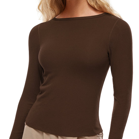 Ribbed Built In Bra Long Sleeve Tops