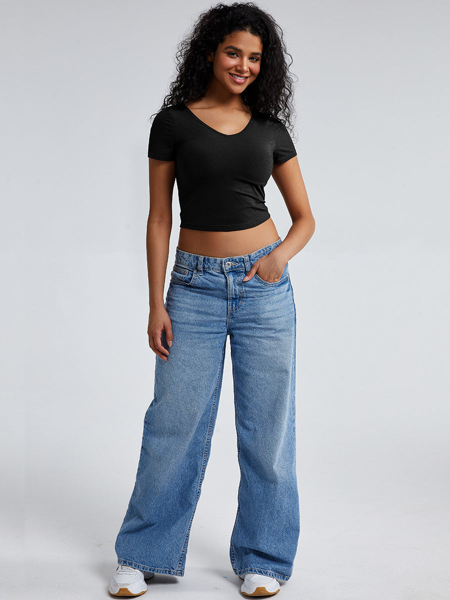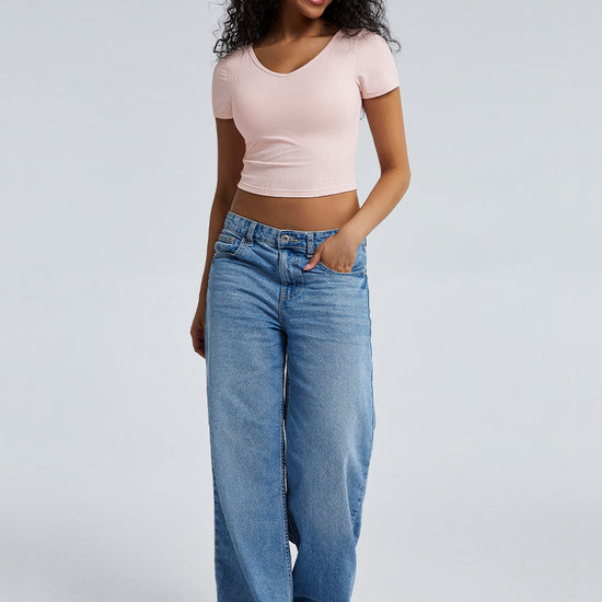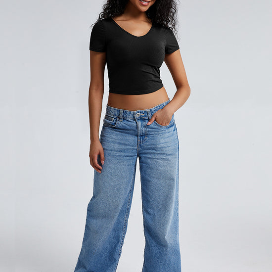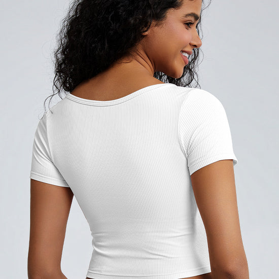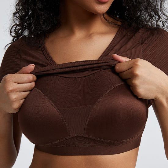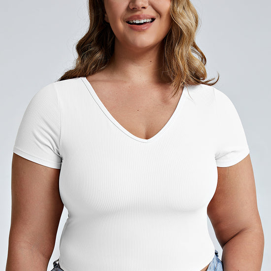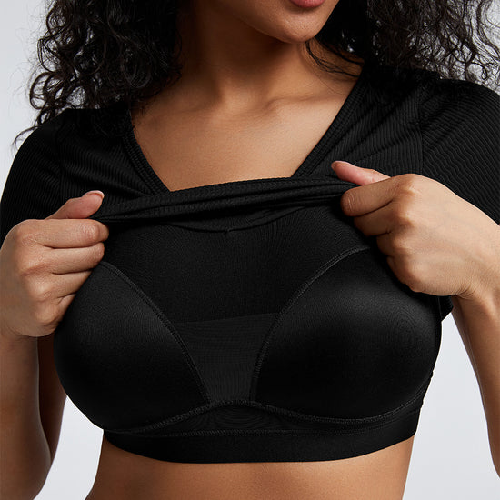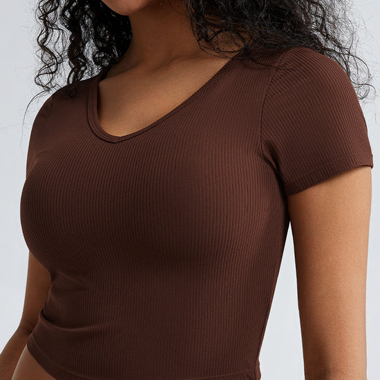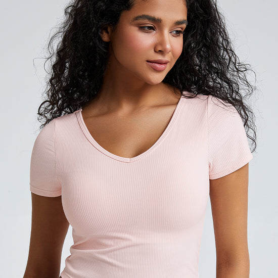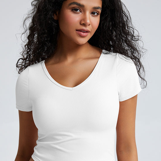 Sleek and breathable, our V Neck Short Sleeve Brami offers high built-in support with a touch of feminine edge. The deep V neckline frames your collarbone, while the ribbed recycled fabric sculpts and stretches for a second-skin fit. No bra lines, no bulkβjust clean, flattering comfort you can move in.