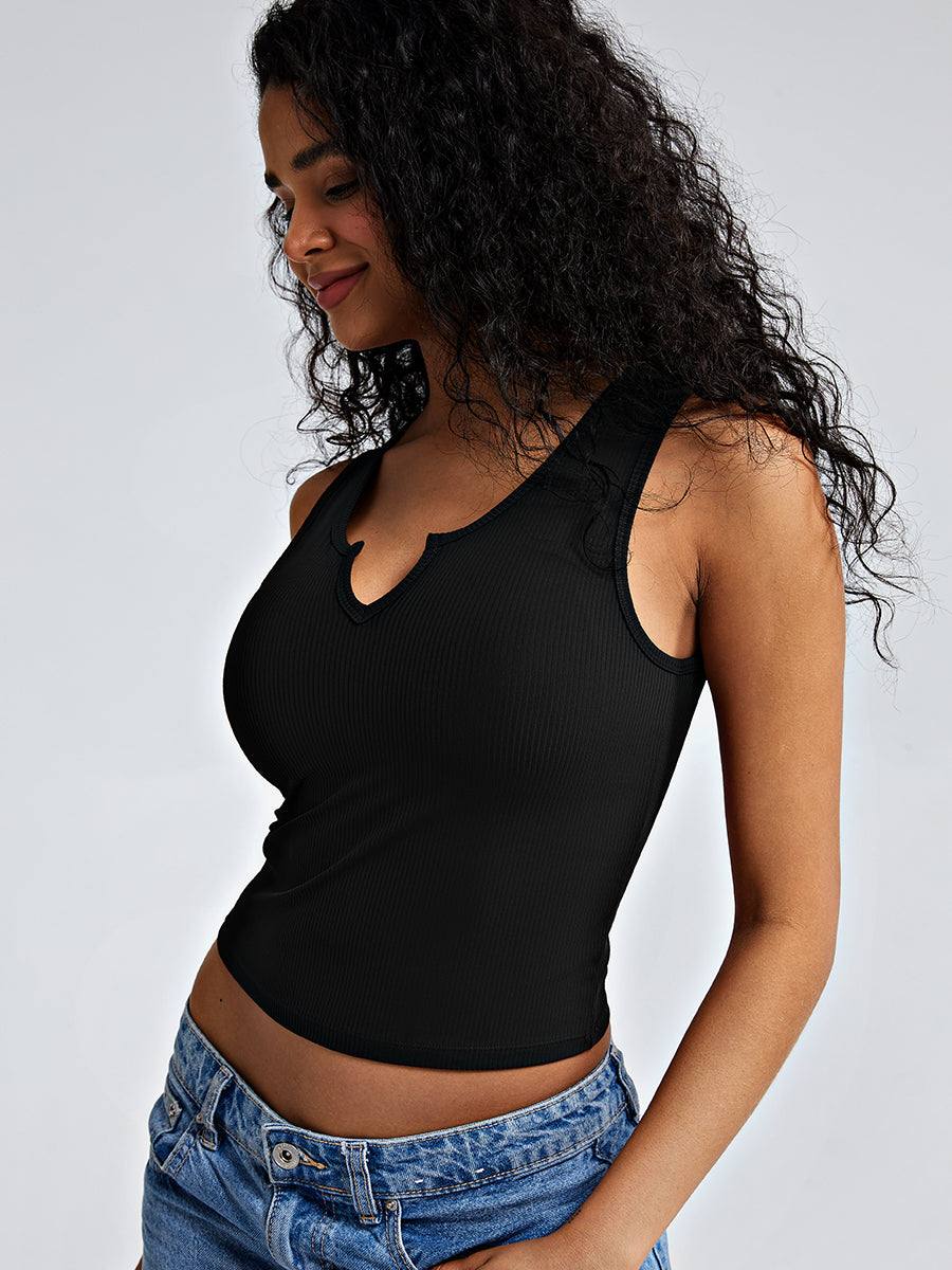 Stay cool and confident in this mini V-neck brami tank. Featuring built-in padding and a flattering cut, it defines your curves while offering all-day safe support and breathability.