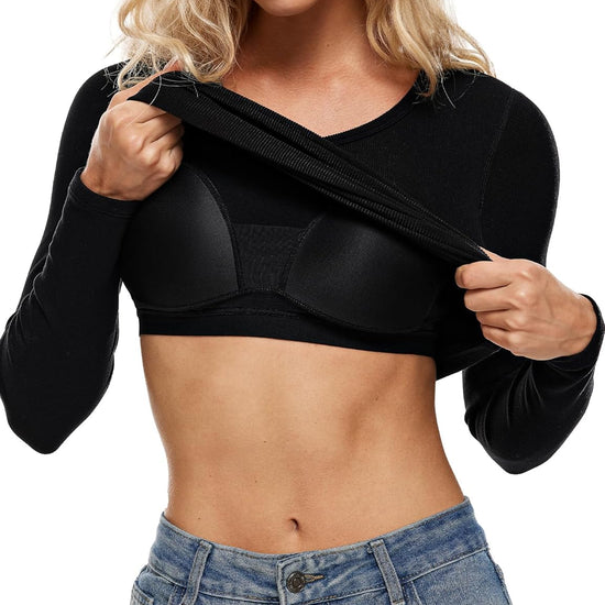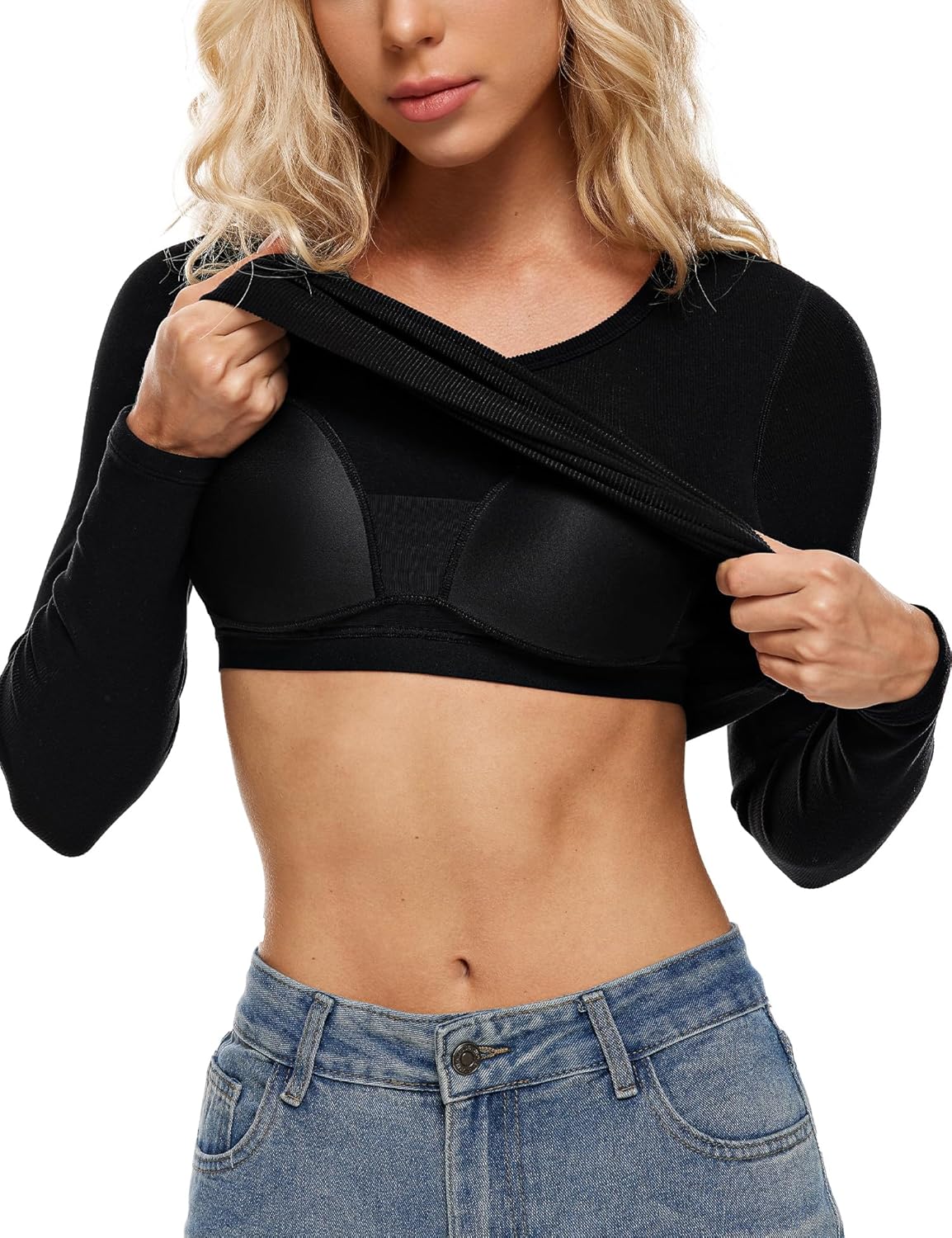 Details: V Neck, Ribbed Texture, Long Sleeves, Built-In Bra